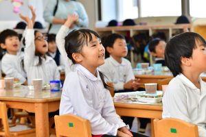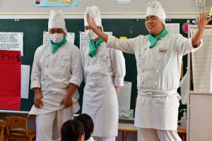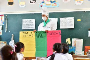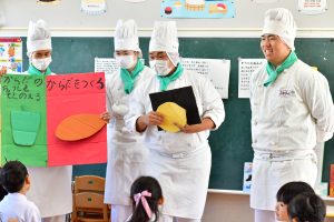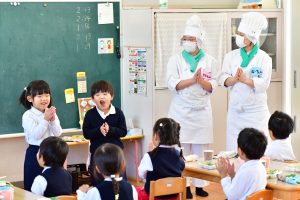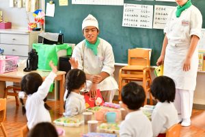 11月19日(水)食物科3年生が坂出一高幼稚園の園児にお子さんお子様弁当を提供しました。食事の前には園児が食事に関心を持ってもらえるようにクイズ形式で面白楽しく食事の大切さや苦手な食材の美味しい食べ方などを話しました。園児たちも食事をしながら「これ何?」「嫌いやけど食べれた!」など嬉しい反応をいただきました!ありがとうございました!
